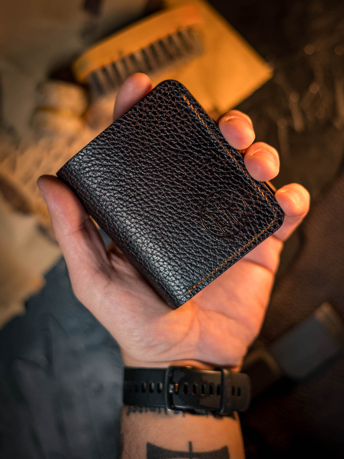 În plus, ca semn de mulțumire pentru clienții care aleg edițiile noastre limitate, fiecare portofel buletin nou Dark Brown & Cognac vine însoțit de un breloc cu carabină din piele naturală, în valoare de 55 lei – complet gratuit. Brelocul este realizat în același atelier, din piele tăbăcită vegetal, și completează perfect estetica portofelului.